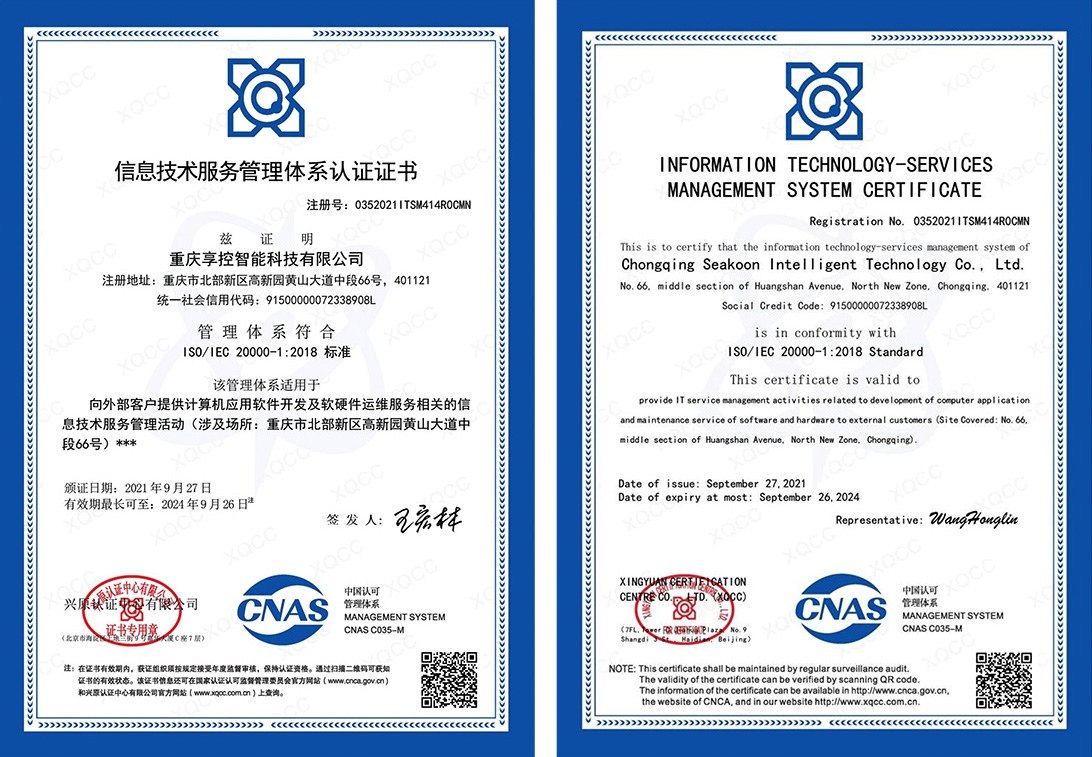 獲信息技術運行維護標準符合性證書